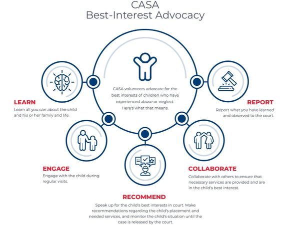 CASA stands for “court-appointed special advocate.” CASA Advocates are volunteers, trained by supportive, accessible staff to advocate for the best interests of abused or neglected children during court proceedings. CASA Advocates are welcomed into courtroom proceedings and have the opportunity to truly change a child’s story. If interested, click the link below.